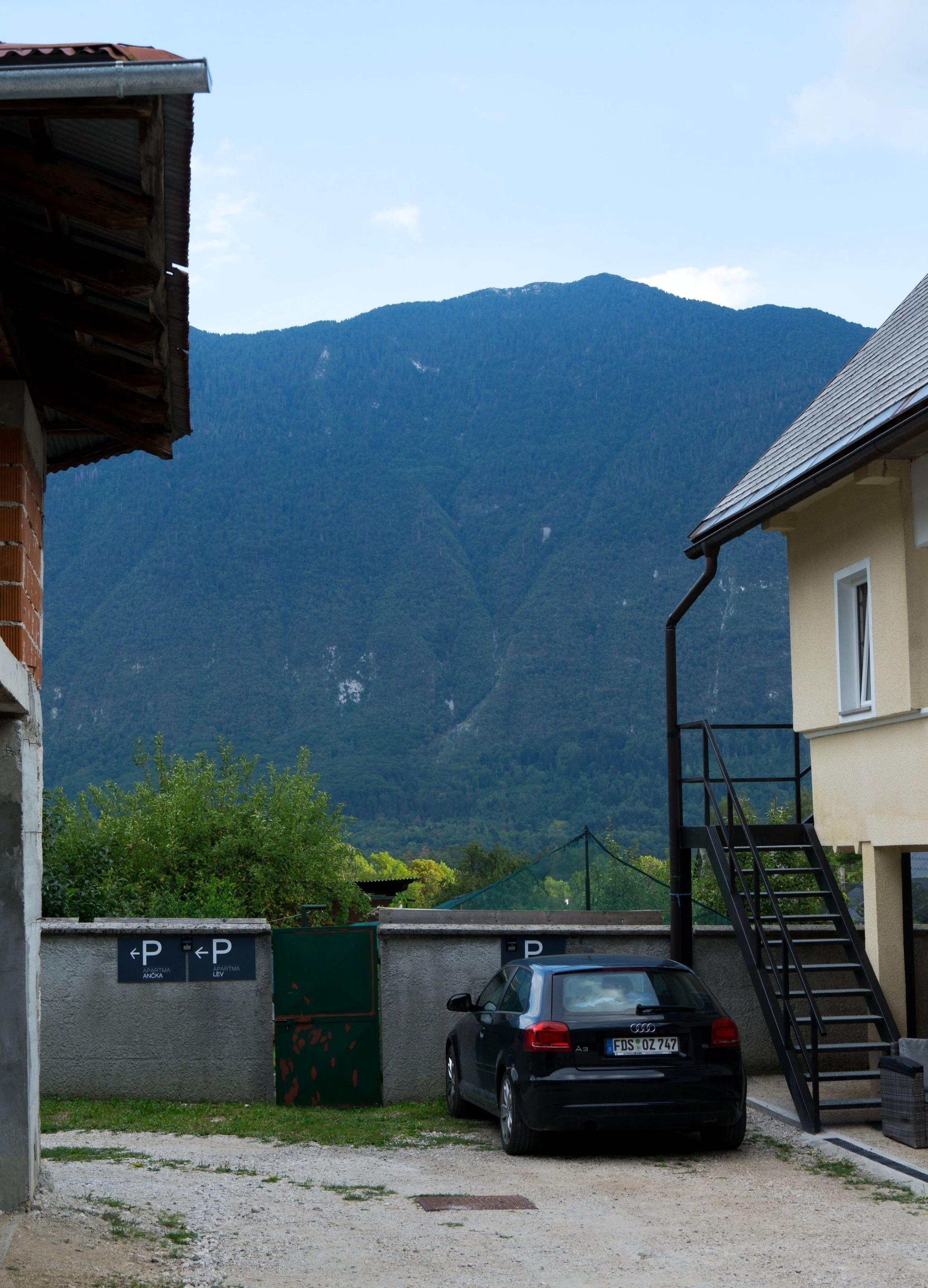 Igen en lille lejlighed med eget køkken, vaskemaskine, flere værelse, god parkering osv. Her var køkkenet også udstyret med alt i krydderier og basisvare, hvilket var rigtig rart. Der var også fin mulighed for at sidde ude i solen foran lejligheden, hvilket altid er et kæmpe plus i min bog! Det eneste minus her var beliggenheden, da man var nødt til at køre ca. 5 min. indtil selve Tolmin. Jeg havde, ud fra min research på Google Maps, troet at man kunne gå, men det var en stor omfarts-lignende-vej, så den gik altså ikke. Det vidste sig også, at vi mest skulle være i kontakt med værtindens svigermor – en kvinde, der ikke talte et ord engelsk, så det var lidt af en udfordring. Vi kom dog igennem det hele med Google Translate.